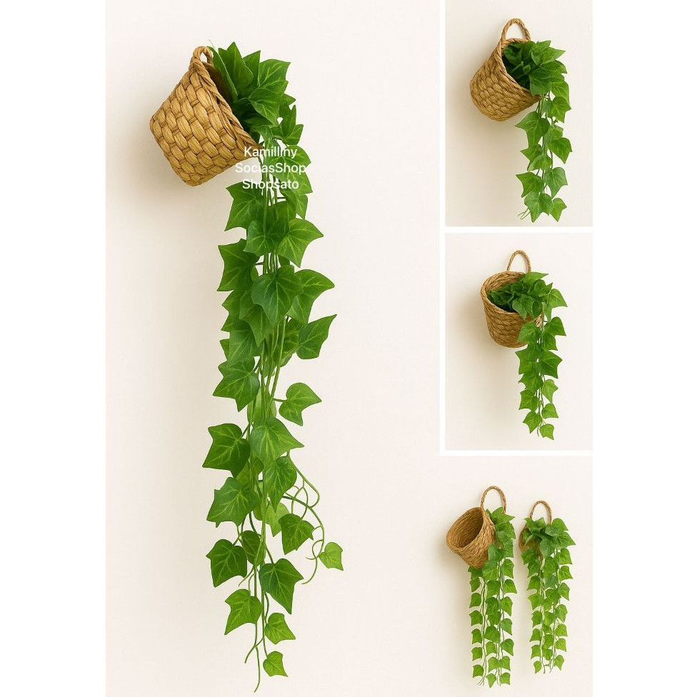 1 Arranjo 2 Pendentes 2m Cada Artificiais + Vaso de Planta Trançado Decoração Casa