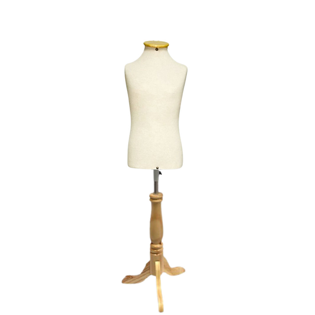 1 Busto Manequim Infantil Forrado pedestal Tripé madeira Moulage Confecção loja vitrine