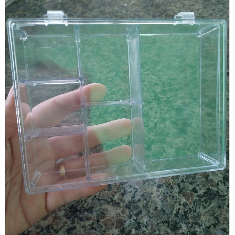 1 Caixa acrílica Transparente com divisórias 14x10x3,5 cm
