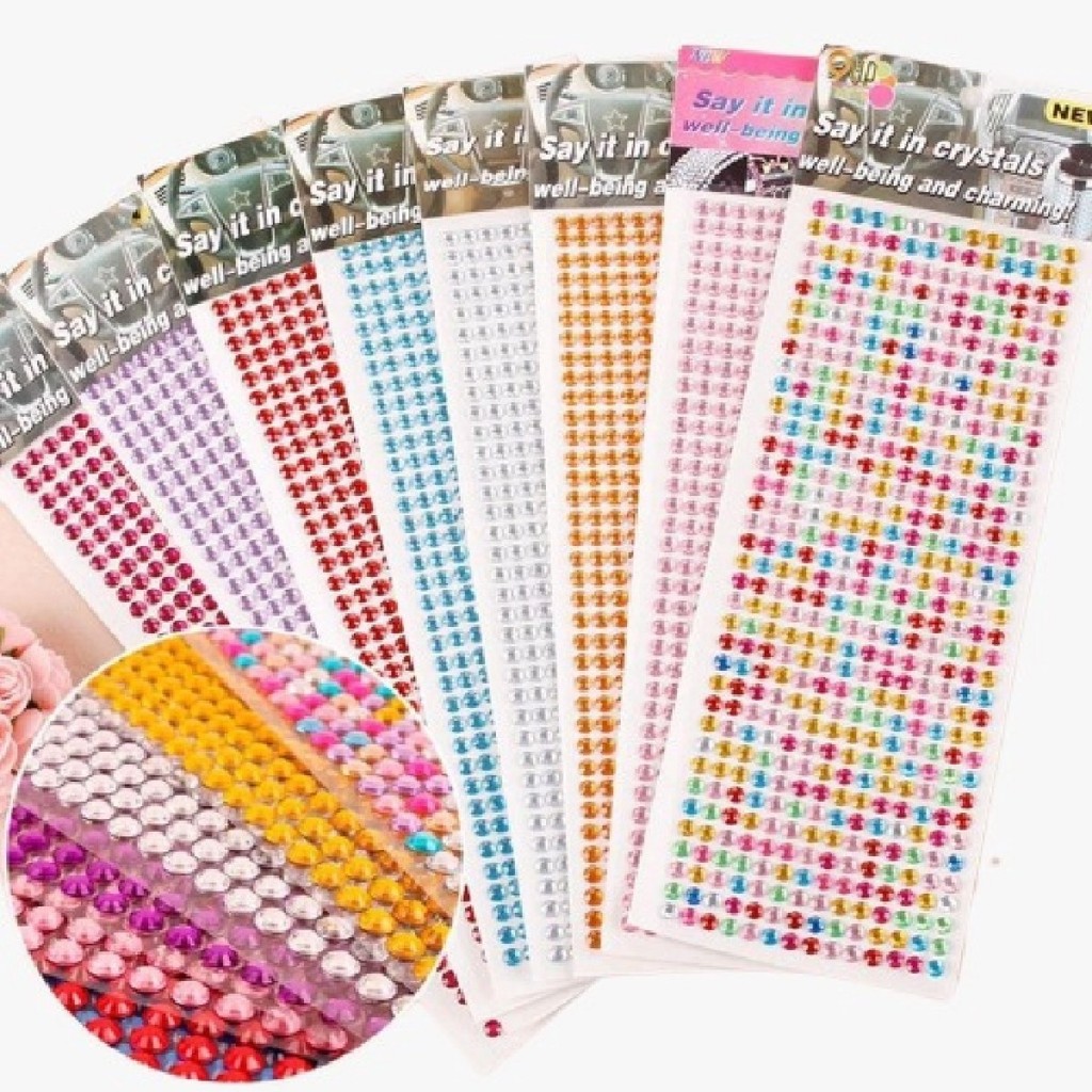 **ATENÇAO, NAO PERSONALIZAMOS E NEM FABRICAMOS NENHUM PRODUTO, TODOS VÃO NOS MODELOS DAS FOTOS.** Item Anunciado 1 Cartela Strass 4 mm e 6 mm Meia Perola **ESCOLHER A COR NA VARIAÇÃO DO ANUNCIO** A cartela de 4mm possui 494 strass A cartela de 6mm possui 330 strass As cartelas adesivas são perfeitas para decorar eletrônicos, automóveis, para criar lembrancinhas e muito usado no artesanato em geral. Qualquer dúvida, estamos à disposição. Ferfestt