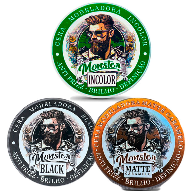1 cera Modeladora Incolor 120g + 1 Matte Caramelo 120g + 1 Preta Black 120g Cabelo