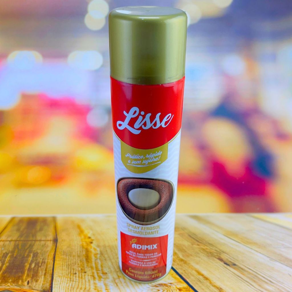 Desmoldante Spray Aerosol Lisse 600ml/470g O Desmoldante Lisse é a solução prática e eficiente para untar formas e assadeiras sem bagunça! Ideal para todos os tipos de massas, bolos, pães e preparos de confeitaria, o spray forma uma película antiaderente uniforme, facilitando a remoção dos alimentos sem grudar. Dispensa o uso de manteiga, margarina ou farinha, proporcionando mais agilidade e economia na cozinha. Modo de usar: Retire a tampa, agite bem e borrife uma leve camada sobre a superfície desejada. Produto alimentício com qualidade profissional. ✅ Rende muito ✅ Uso rápido e prático ✅ Não altera o sabor ou aroma das receitas ✅ Perfeito para uso doméstico e profissional