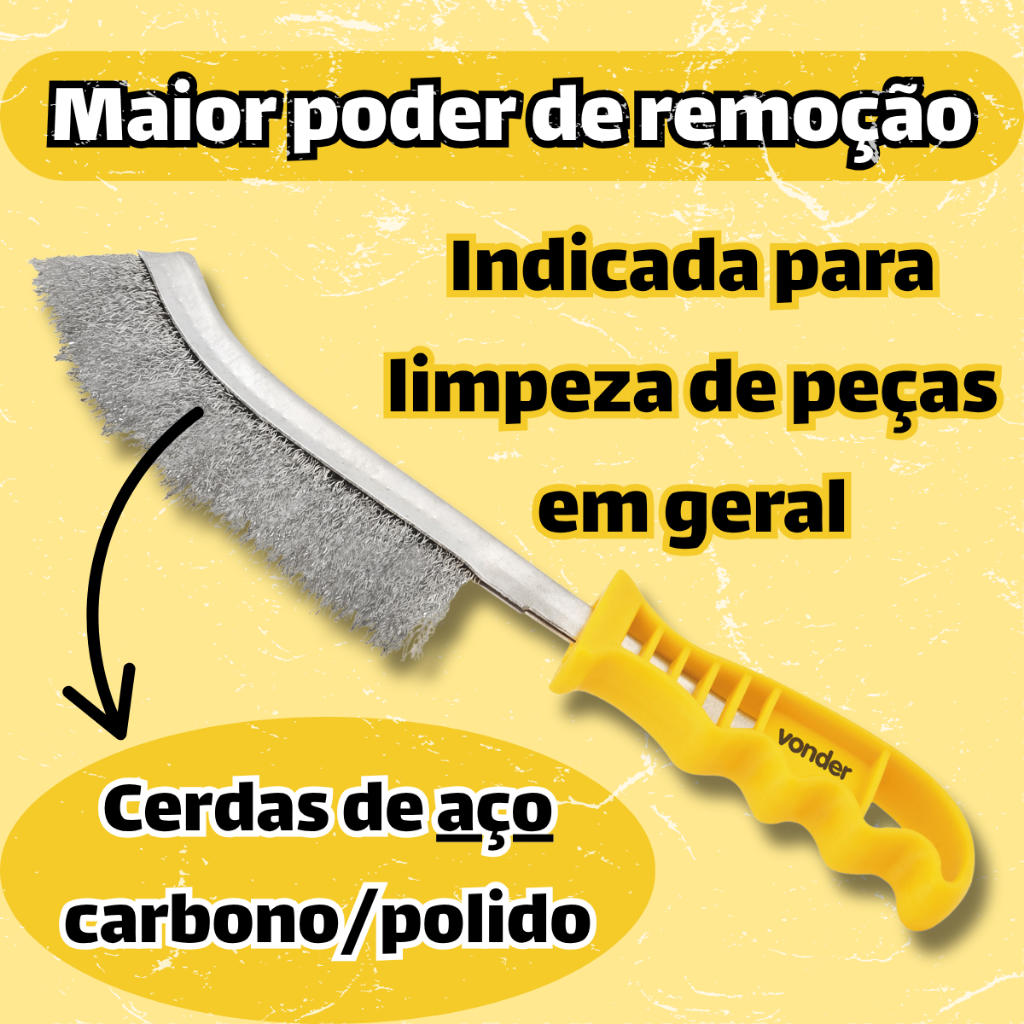 1 Escova de Aço Com Cabo Limpar Grelha Churrasqueira, Uso Geral, Limpeza Pesada Indicada para limpezas de peças em geral. Possui maior poder de remoção. ITENS INCLUSOS: 1un de escova manual de aço carbono MATERIAL: Base: Metal Cerdas: Aço Carbono Polido Cabo: Plástico DIMENSÕES: Comprimento total: 26cm Comprimento do cabo: 11cm Comprimento das cerdas: 12cm Largura das cerdas: 2cm MARCA: Vonder