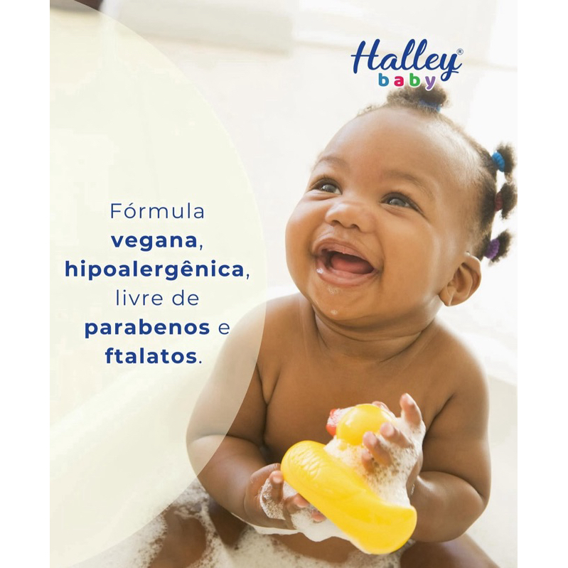Shampoo Infantil Halley Baby - 210ml O cuidado mais delicado e seguro para a higiene diária. O Shampoo Infantil Halley Baby promove uma limpeza eficiente da cabeça aos pés dos bebês e das crianças. Segurança Total: É hipoalergênico , sem parabenos , sem lágrimas e livre de ftalatos , garantindo total segurança para o seu bebê. Multifuncional: Possui fórmula neutra e cremosa , ideal para uso da cabeça aos pés e pode ser utilizado para a limpeza facial de adultos. Compromisso Ético: Produto vegano e não testado em animais. Modo de Uso: De uso diário, aplique uma pequena quantidade nas mãos e espalhe sobre a pele ou nos cabelos molhados até obter uma espuma cremosa. Em seguida, enxágue bem com água.