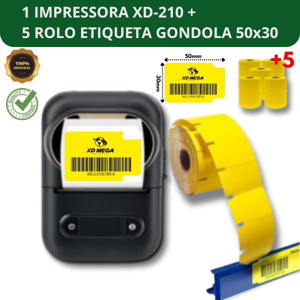 1 IMPRESSORA BLUETOOTH XD-210 + 5 ROLO ETIQUETA GONDOLA 50x30