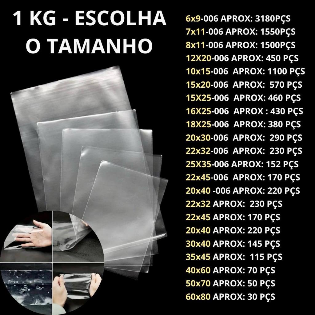 1 KG Embalagem Transparente Saco Plástico Brilhante Sacola/Saquinho- Diversos Tamanhos. Direto de Fábrica