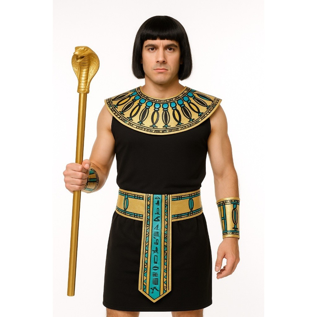 1 Kit Egipcio + Bastão Naja Fantasia Cleopatra Cajado Cobra Serpente Bracelete Cinto Colar Festa Cosplay 5pçs Rainha