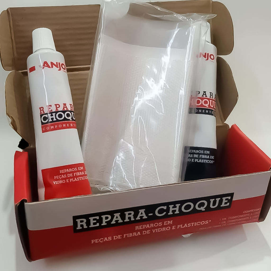 COMERCIAL VIPASA DISTRIBUIDORA. 1 Kit Repara Choque Comp A + Comp B + Tela Fibra Vidro- Anjo REPARA CHOQUE ADESIVO REPARADOR BISNAGA 150G (40665-94) / ANJO 1 Kit Repara Choque + Tela Fibra De Vidro Adesivo Massa Reparador Automotivo Plástico Em Geral 150g Descrição Do Produto Descrição Massa Reparadora De Para-Choque 150G - Anjo Indicado para reparação de para-choques, para-lamas e peças plásticas em geral (poliuretano e ABS) e peças de fibra de vidro. - O rendimento prático deste produto é variável de acordo com espessura aplicada, método e técnica de aplicação, tipo e rugosidade do substrato e condições ambientais, etc. - As instruções contidas no boletim técnico são baseadas em nossa experiência e conhecimento técnico, entretanto, alguns fatores independem de nosso controle como fabricante, tais como: preparo de superfície, aplicação, condições de trabalho, etc. - Não assumimos qualquer responsabilidade quanto a danos materiais e pessoais causados pelo mau uso das informações contidas no boletim técnico e dos produtos mencionados. - O boletim técnico está sujeito a alterações, sem aviso prévio. DILUIÇÃO: Catálise - 1 parte do Repara Choque Componente A - 1 parte do Repara Choque Componente B. COMERCIAL VIPASA DISTRIBUIDORA.