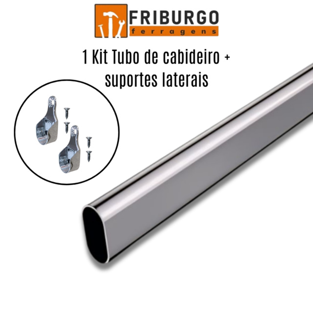 1 Kit Tubo de Cabideiro Oval Arara para guarda-roupas e closets + suportes laterais e parafusos (sob medida)