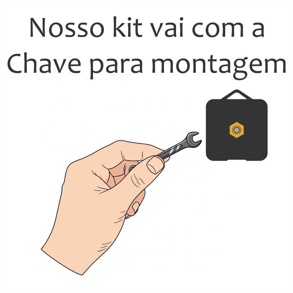 1 Máquina De Relogio com Ponteiro Gigante Big Bang + Chave para Montagem Eixos 13, 17, 19 e 21