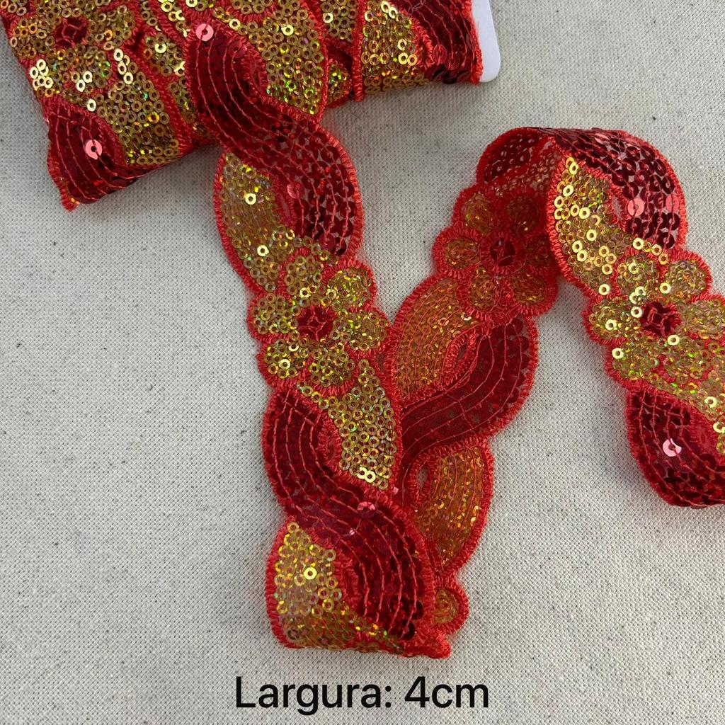 1 metro Fita Bordada Lantejoula Paete Galão Carnaval Costura Brilho