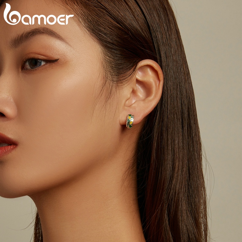 1 Par Bamoer Fivela De Orelha De Prata 925 Lemon & Leaf Fashion Jóias Presentes Para Mulheres SCE1376