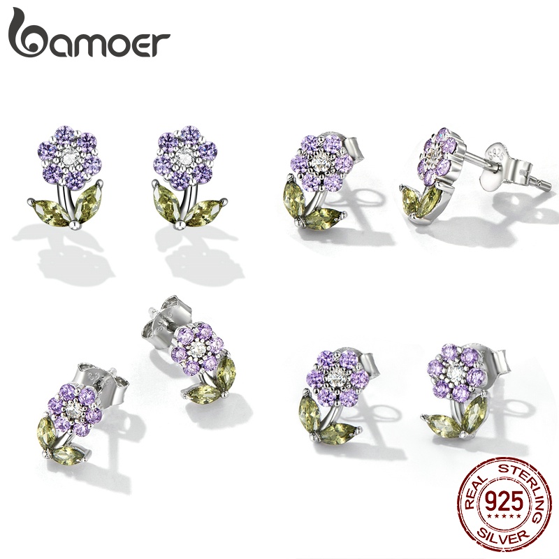 (1 Par) Brinco De Tarraxa De Flor De Prata Bamoer 925 De 3 Estilos BSE592-PK