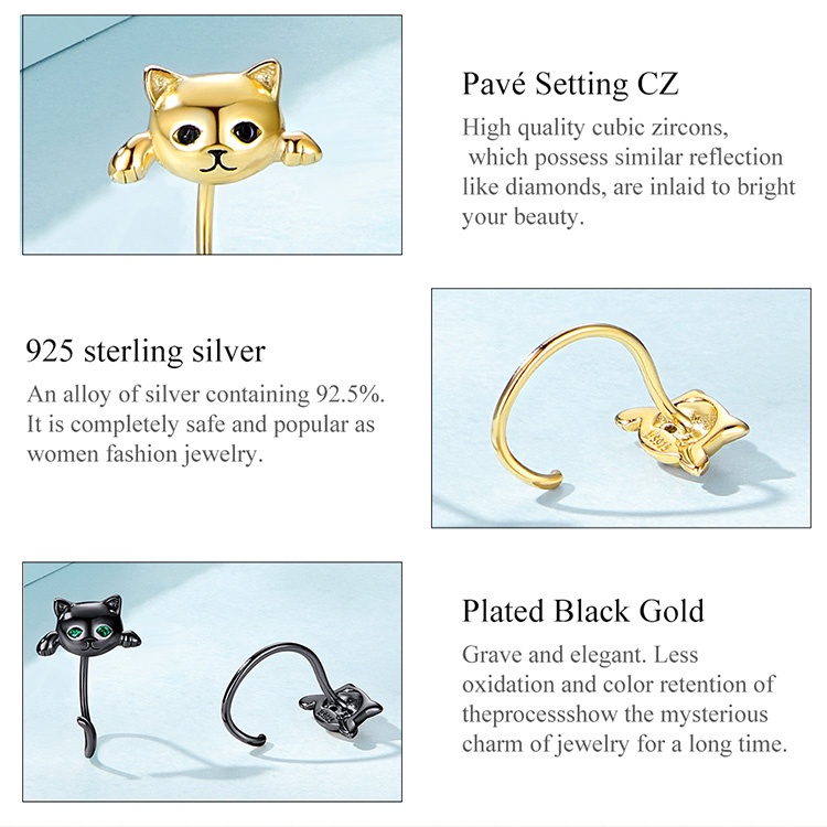 1 Par Brincos Bamoer De Prata Esterlina 925 Com Orelha De Gato/Acessórios De Moda Para Mulheres