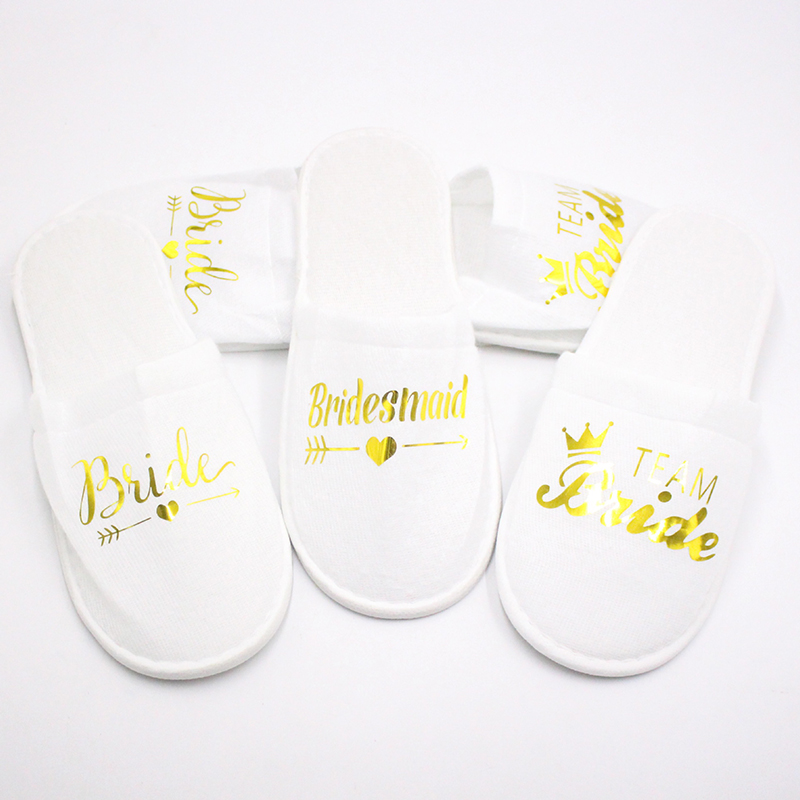1 Par Chinelo De Tecido/Flexível Com Letras De Ouro Simples Para Noivas/Hotel