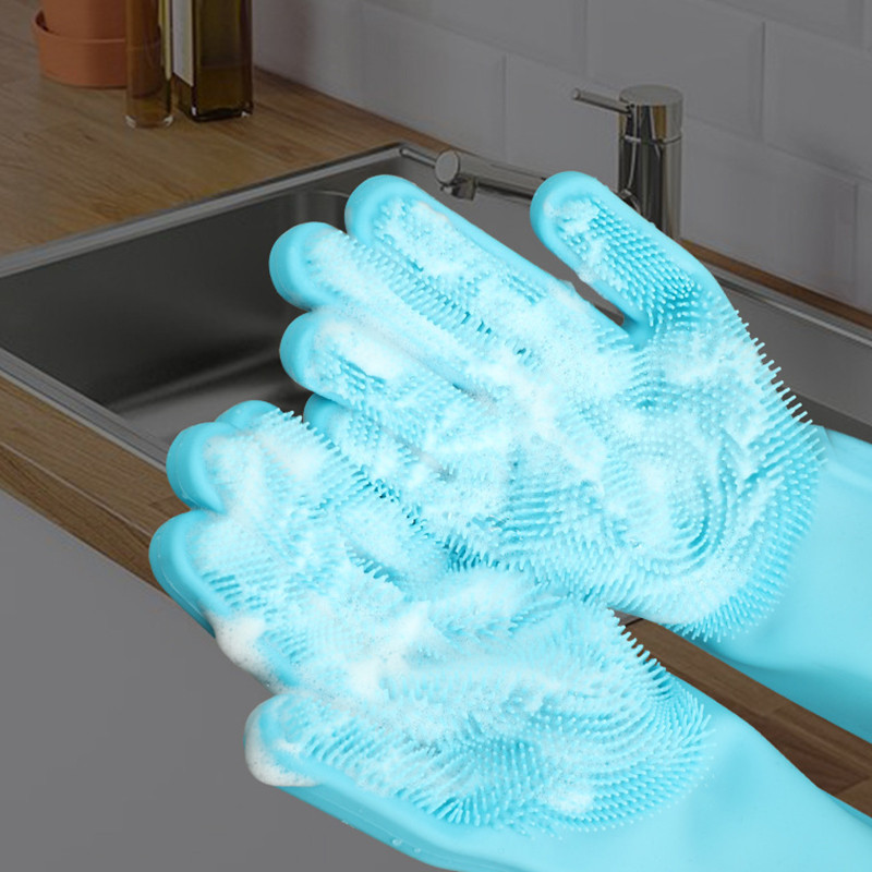 1 Par de luvas de lavagem de louça, Luva louça reutilizáveis de Silicone esponja cozinha banheiro