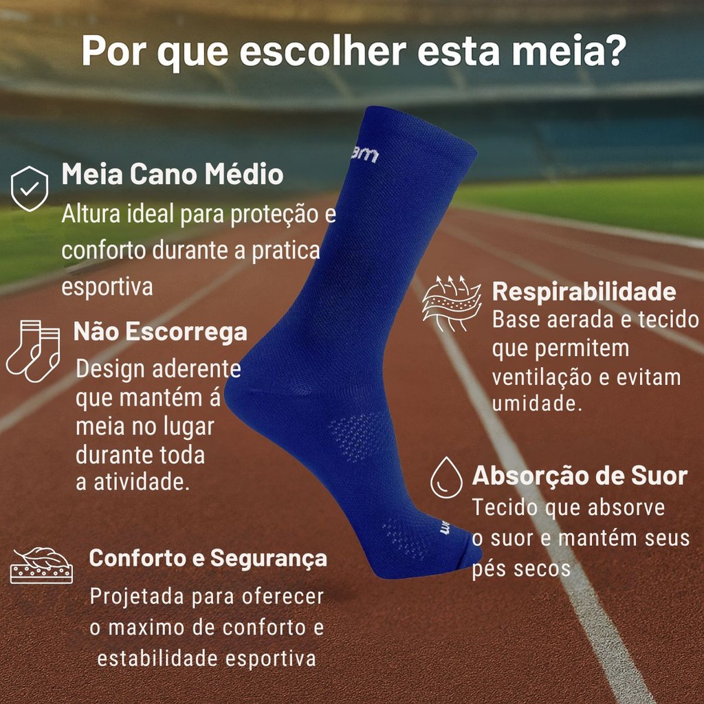 Desfrute do máximo de conforto, segurança e performance durante seus treinos com a nossa Meia Cano Médio Esportiva! Características: Meia Cano Médio: Altura ideal para proteção e conforto durante a prática esportiva. Não Escorrega: O design aderente do cano médio garante que a meia permaneça no lugar durante toda a atividade. Respirabilidade: A base aerada e a composição do tecido permitem que seus pés respirem, evitando o acúmulo de umidade. Absorção de Suor: O tecido ajuda a absorver o suor, mantendo seus pés secos e confortáveis. Conforto e Segurança: Projetada para oferecer o máximo de conforto e segurança durante a prática esportiva. Composição: 95% Poliamida, 03% Elastano e 02% Elastodieno. Itens: Meia Rikam Performance Feminina Cores: Preto Rosa Orquídea Royal Tamanhos com tabela de medidas: 34-39