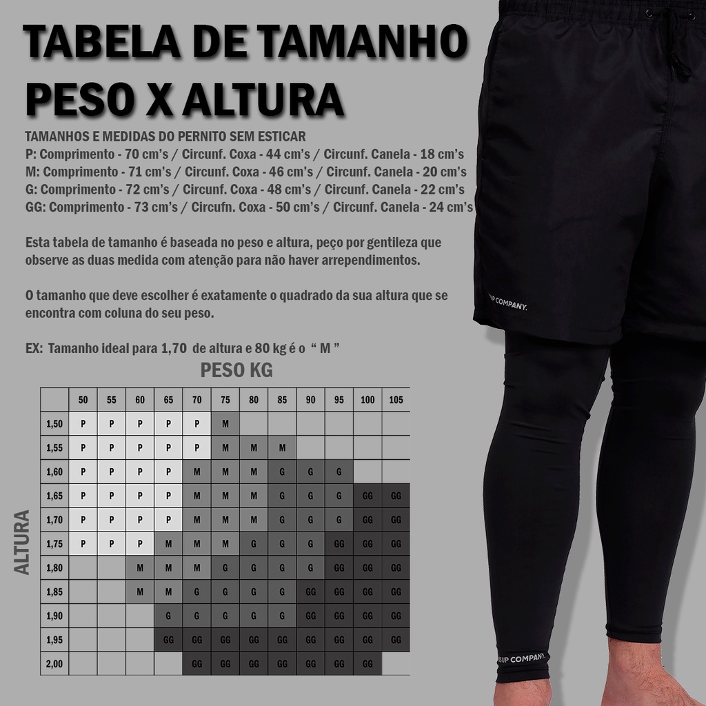 Pernito Ciclismo Pernote Esporte com Proteçao Solar UV 50 Este é um pernito de compressão de qualidade, feito para suportar calor sem atrapalhar na transpiração e fácil evaporação do suor da pele. Um fator importante, é um pernito que bloqueia raios UVA e UVB do sol, mantendo sua pele protegida de queimadura. Também por ser um tecido térmico no frio ele tem um papel de bloquear o vento gelado, permitindo a produção continua e conforto na pratica de atividade física. Material do pernito - Suplex poliéster micro dry; Composição - 90% Poliéster e 10% Elástano; Elástico - 2 cm’s de largura; Costura reforçada - 3 fios; Tecnologia do tecido – Térmico; Proteção solar UVA e UVB - Fator UV 50; TAMANHOS E MEDIDAS DO PERNITO SEM ESTICAR: P: Comprimento - 70 cm’s / Circunf. da Coxa - 44 cm’s / Circunf. Canela - 18 cm’s M: Comprimento - 71 cm’s / Circunf. Coxa - 46 cm’s / Circunf. Canela - 20 cm’s G: Comprimento - 72 cm’s / Circunf. Coxa - 48 cm’s / Circunf. Canela - 22 cm’s GG: Comprimento - 73 cm’s / Circufn. Coxa - 50 cm’s / Circunf. Canela - 24 cm’s Caracteristicas: Pernito, Masculino, sport, térmico, Canelito, Feminino, esporte, ultra violeta, com, proteção uv, ortopedica, uv, bike, uv 50, ciclista, proteção solar, ciclismo, mtb, goleiro, corrida, motocross.