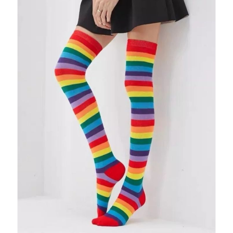1 par Meia 5/8 LISTRADA arco iris cosplay n34a41 meião colorida