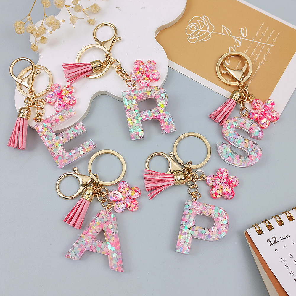 1 Pçs Bonito Flor Pingente Az Carta Chaveiros Moda Borla Alfabeto Chaveiro Porta-Chaves Do Carro Presente Lembrança