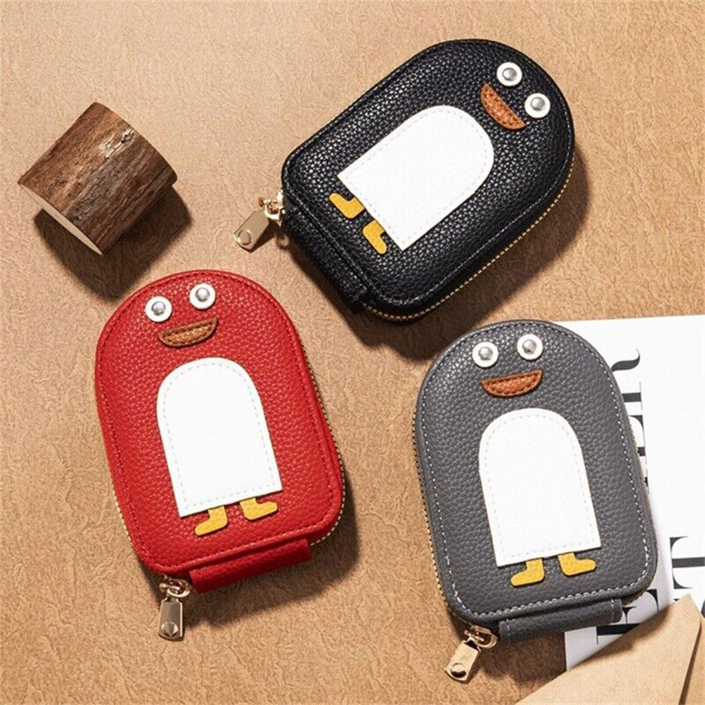 1 Pcs Mulher Pingüim Fofo Pu Caixa De Couro Porta-Cartões Com Zíper Organizador De Grande Capacidade Personalidade Criat
