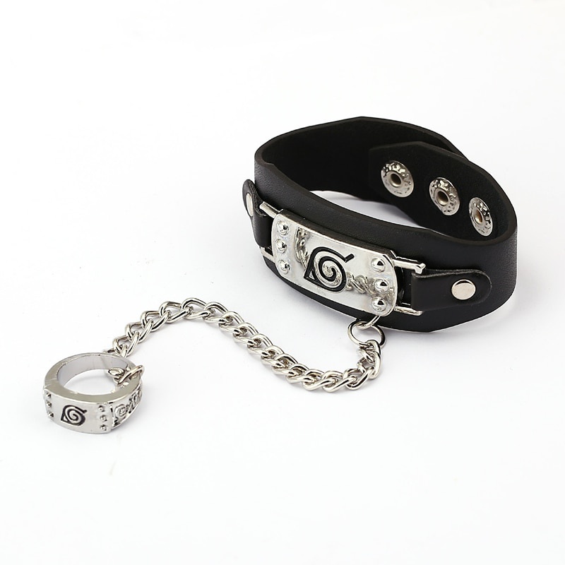 1 Pçs/Set Japão Anime Uzumaki Uchiha Sasuke Konoha Attack on Titan ONE PIECE Pulseira De Couro Do Punk Anel