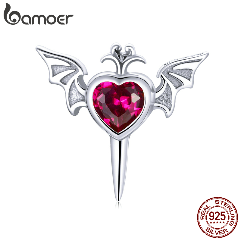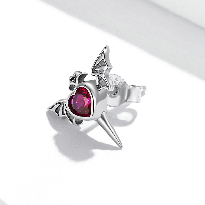 (1 Peça) Bamoer 925 Sterling Silver Earring Skull Butterfly Asas Do Diabo Borboleta Amor Cristal Vermelho De Espada SCE1179