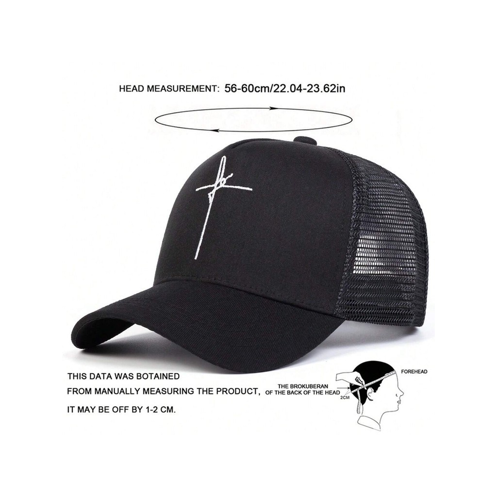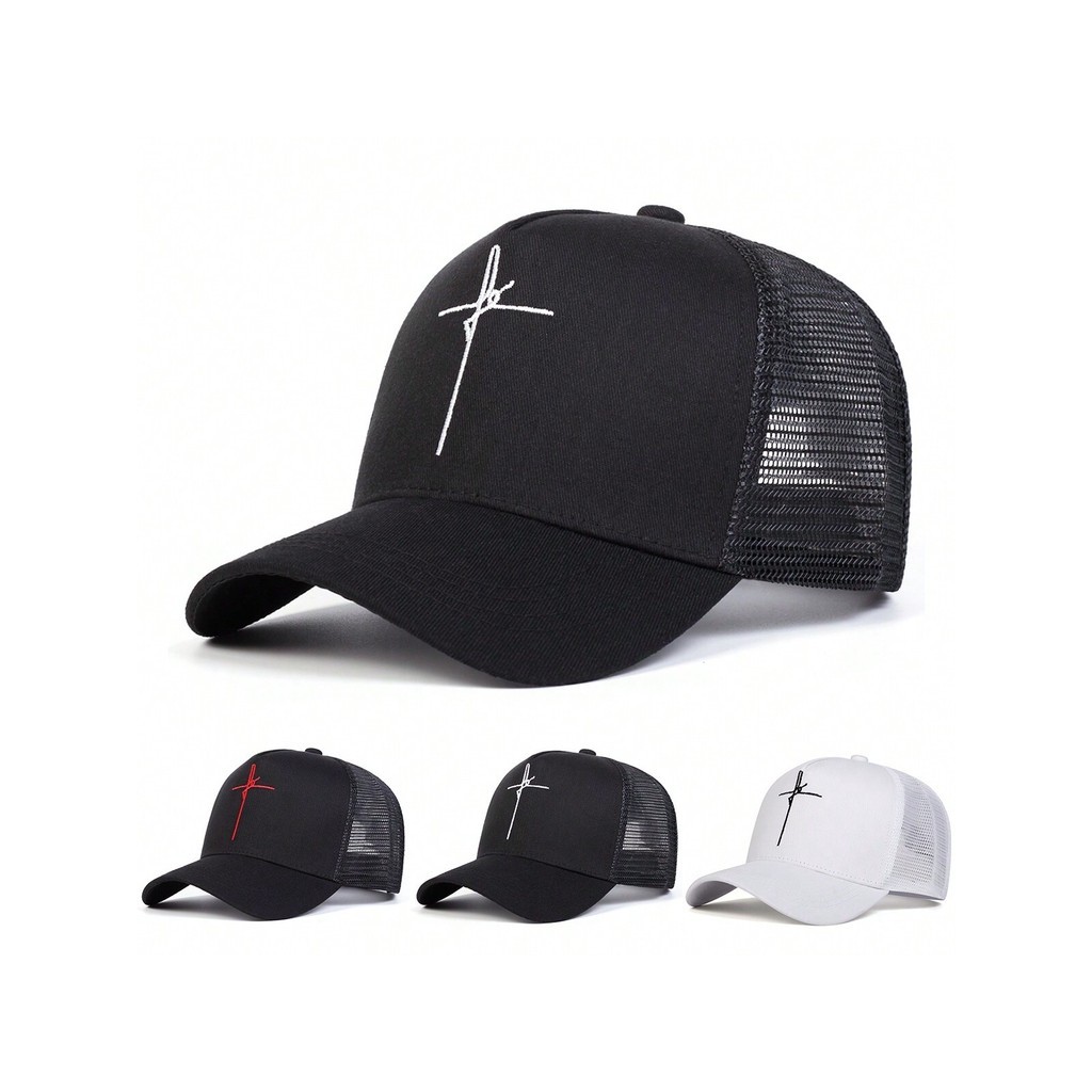 1 peça Boné Trucker com Bordado de Cruz Masculino, Boné de Beisebol com Padrão de Fé para Esportes Ao Ar Livre,