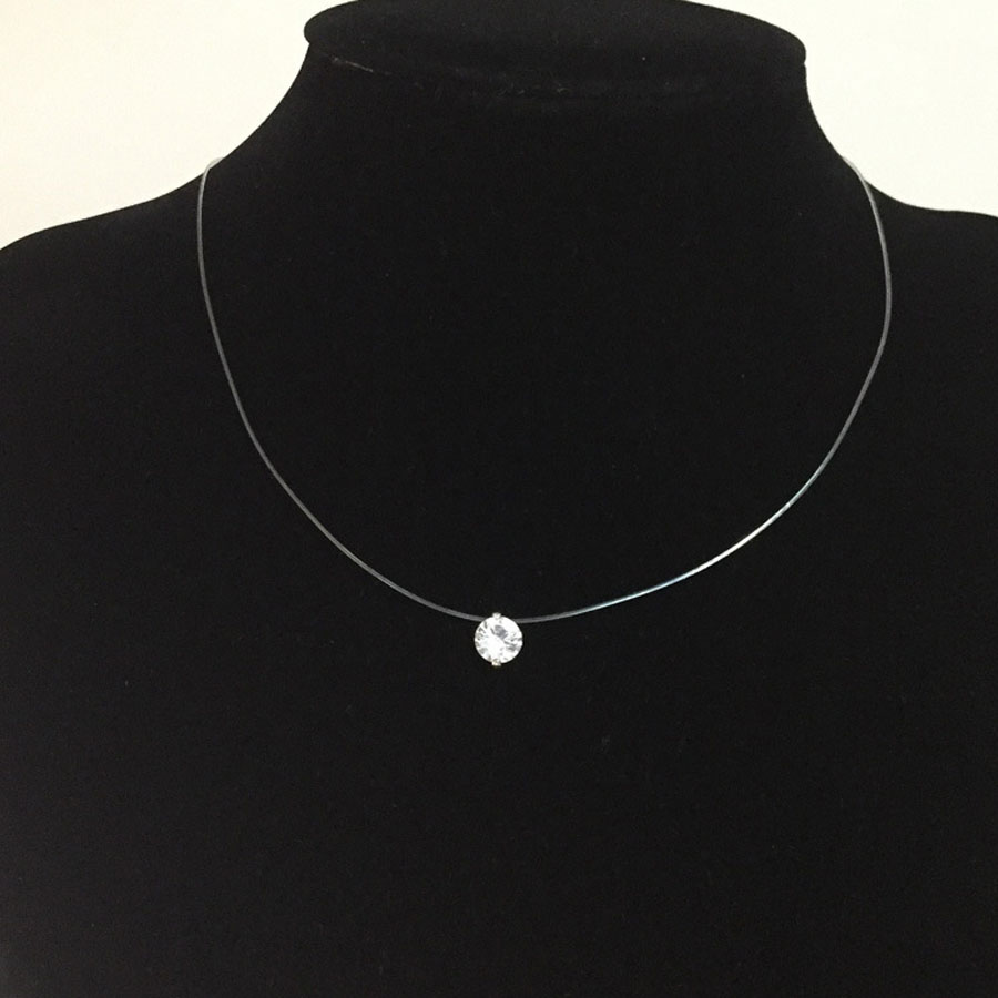 1 Peça Colar Curtos de Diamante de Zircônia com Linha de Peixe Transparente para Mulheres
