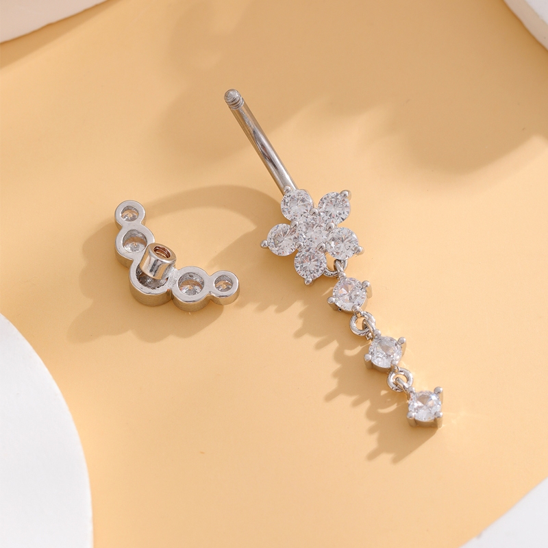 1 Peça Piercing de Umbigo de Zirconia Floral Longo com Pingente Aço inoxidável Dia Da Deusa