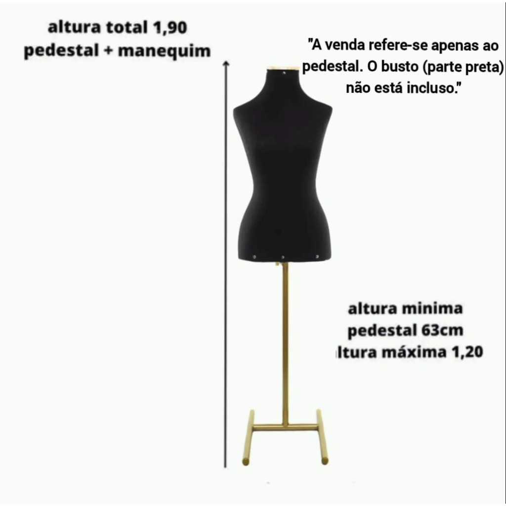 Montando sua loja ou confecção, você precisa de todos os melhores detalhes para o oferecer o melhor conforto, estilo e praticidade nossos pedestais para bustos manequins, de costura e vitrine, apresentam estabilidade, durabilidade e qualidade em todas as peças. Fácil fixação e montagem, além de contar com produto completo, parafusos no pacote. Características: Material: Ferro Base estável e segura Design moderno e elegante Ideal para lojas e vitrines Nossos pedestais têm regulagem de altura, pintura epóxi Dourada, feitos em ferro, e cano central de 1 polegada. Altura: Min 0,60m Max 1,20m Emitimos Nota Fiscal. Obs: Não acompanha o busto. Garantia do vendedor: 90 dias
