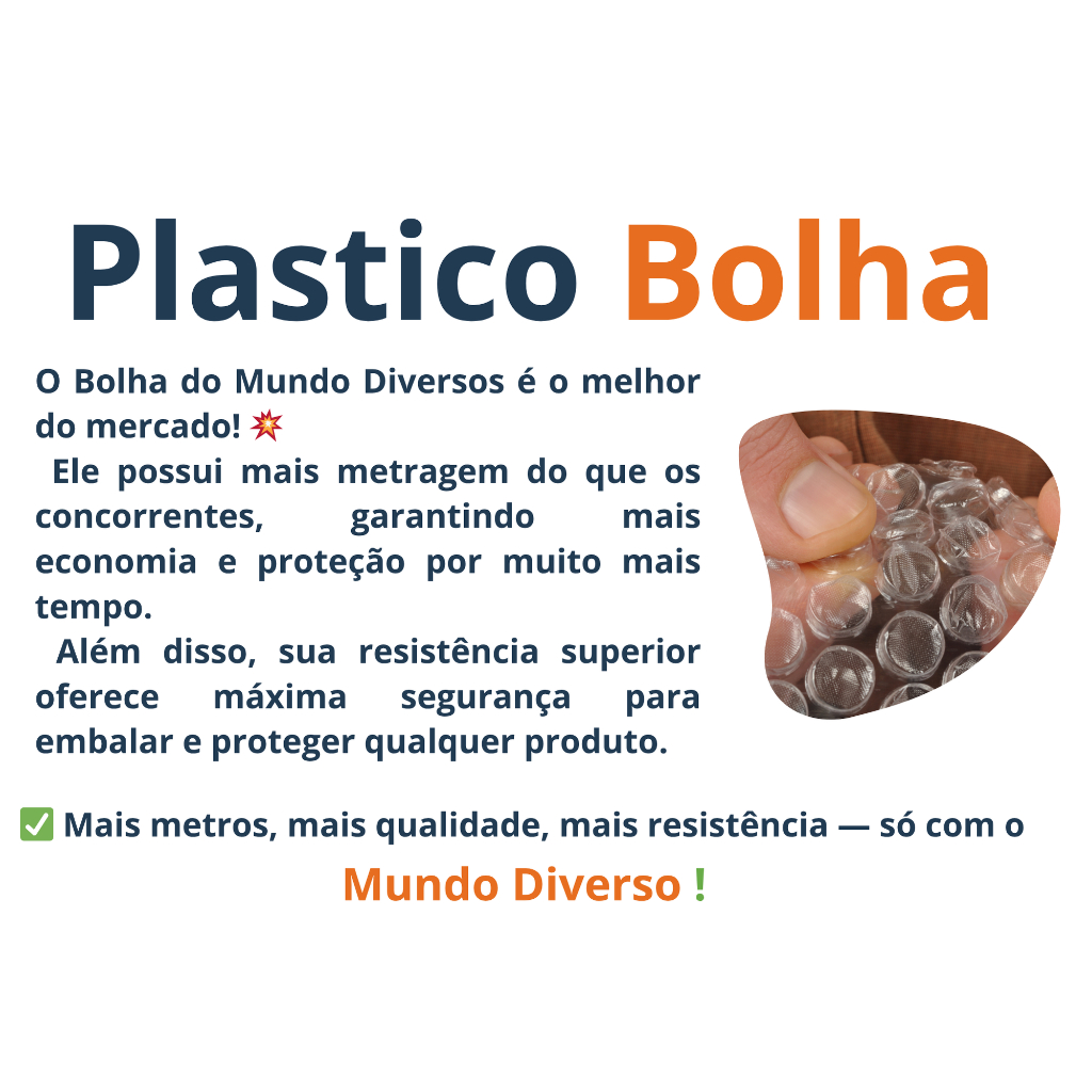 1 PLASTICO BOLHA CORTADO EM 2 PARTES ! 2 unidades 65 x 100 metros. Especificações • Cor: Transparente • Altura: 130 cm • Metragem: 100 m Sobre o produto: • Original. • Lacrado de fábrica. • Com garantia. • Indicada para uso geral. Sobre a entrega: • Estoque: Disponível para envio em 24 horas ( entrega feita pela Shopee ) • Emitimos Nota Fiscal para CNPJ e CPF. Sobre nós: Mundo Diversos Aqui você encontra tudo o que precisa! Somos uma empresa dedicada a oferecer uma enorme variedade de produtos para o seu dia a dia, sempre com qualidade, preço justo e atendimento de excelência. No Mundo Diversos, praticidade e confiança andam juntas — porque aqui, você encontra de tudo em um só lugar! Em caso houver algum problema com o produto, favor não abrir reclamação. entre em contato conosco temos um suporte totalmente disposto a te atender.