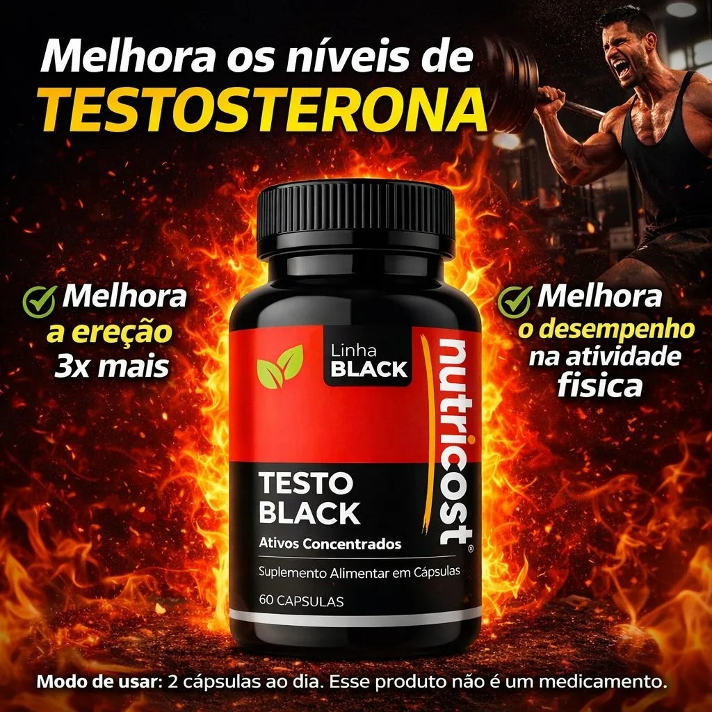 Testo Black é um suplemento alimentar em cápsulas, desenvolvido com ativos concentrados para complementar a alimentação diária. Sua fórmula foi pensada para quem busca mais disposição, desempenho físico e foco na rotina, aliado a um estilo de vida saudável. Produto indicado para adultos. Uso prático e fácil no dia a dia. Modo de usar: consumir 2 cápsulas ao dia ou conforme orientação Advertência: Este produto não é um medicamento. Não exceder a recomendação diária de consumo indicada na embalagem. Manter fora do alcance de crianças.