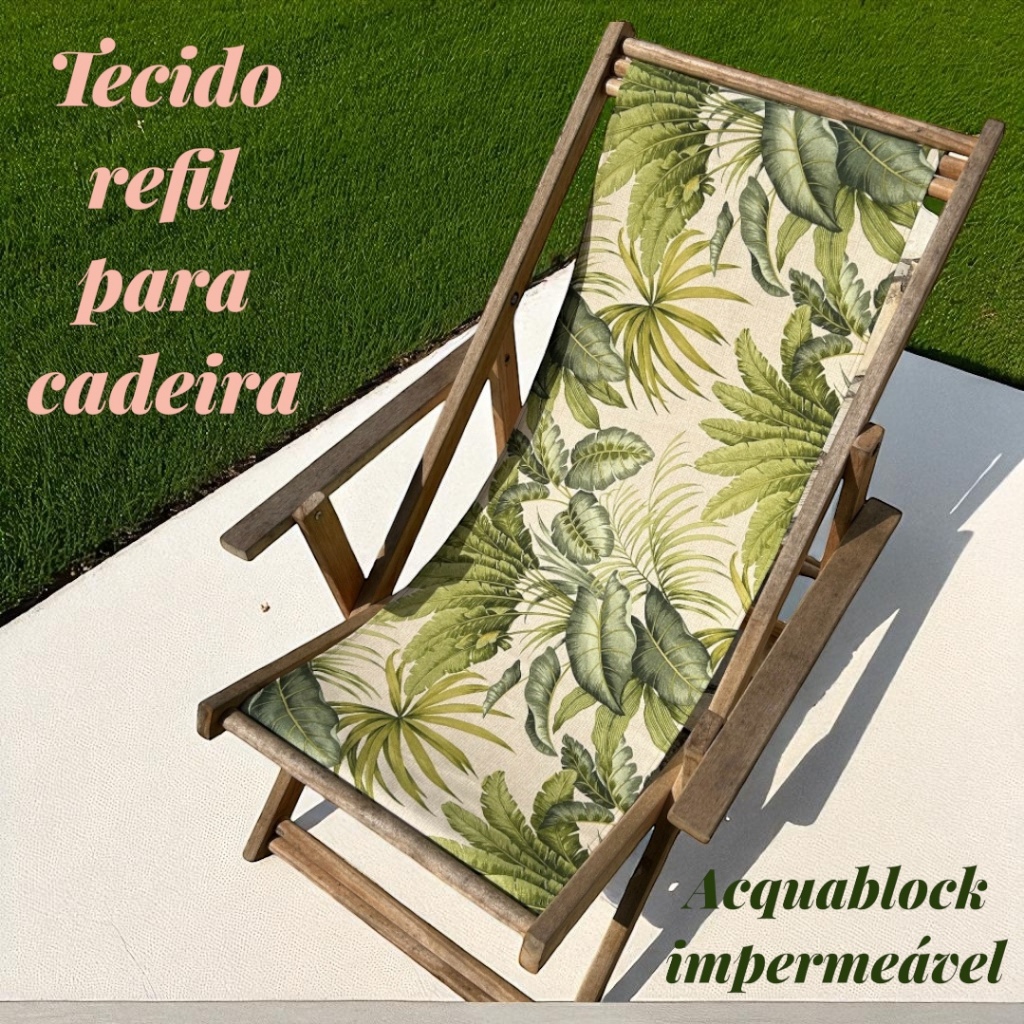 Transforme sua espreguiçadeira preguiçosa com nossos refis exclusivos! Com design moderno e estampas incríveis, nossos tecidos vêm prontos para vestir, trazendo cara nova à sua cadeira com conforto, estilo e praticidade. Características: • Compatível com modelo espreguiçadeira preguiçosa • Medida padrão: 1,20m de comprimento x 43cm de largura • Tecido resistente e confortável ACQUABLOCK IMPERMEABILIZADO • Diversas estampas disponíveis – escolha a sua favorita! • Acabamento impecável e fácil de vestir