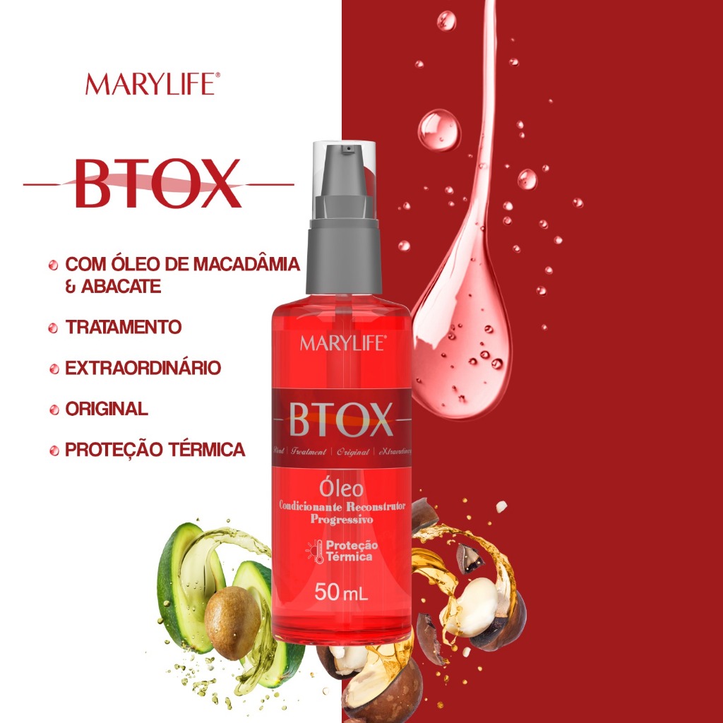 1 UN ÓLEO BTOX 50ml MARY LIFE Reparador de Pontas Condicionante Reconstrutor Proteção Térmica