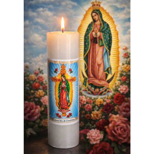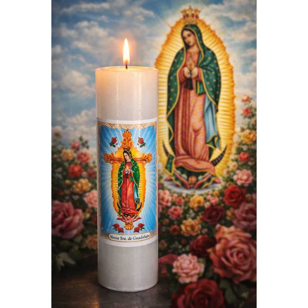 1 Vela Votiva 7 Dias Nossa Senhora de Guadalupe 100% Parafina 260g Quaresma Frei Santos Católicos