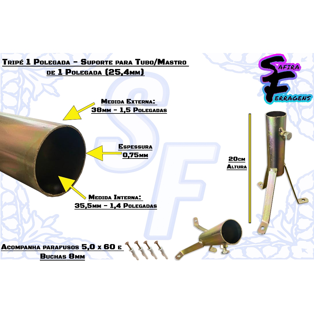 1 x Suporte para Antena Tubo/Mastro/Cano Tripé - Com Parafusos e Buchas para Instalação tem cupom de desconto?