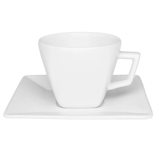 1 Xícara grande de chá 200ml com Pires Quartier White Oxford em Porcelana Branca Quadrado Reposição