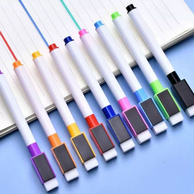 10/20/30/40/50 Canetas Para Quadro Branco Com Imã e Apagador - Tinta Preta - Tampa colorida