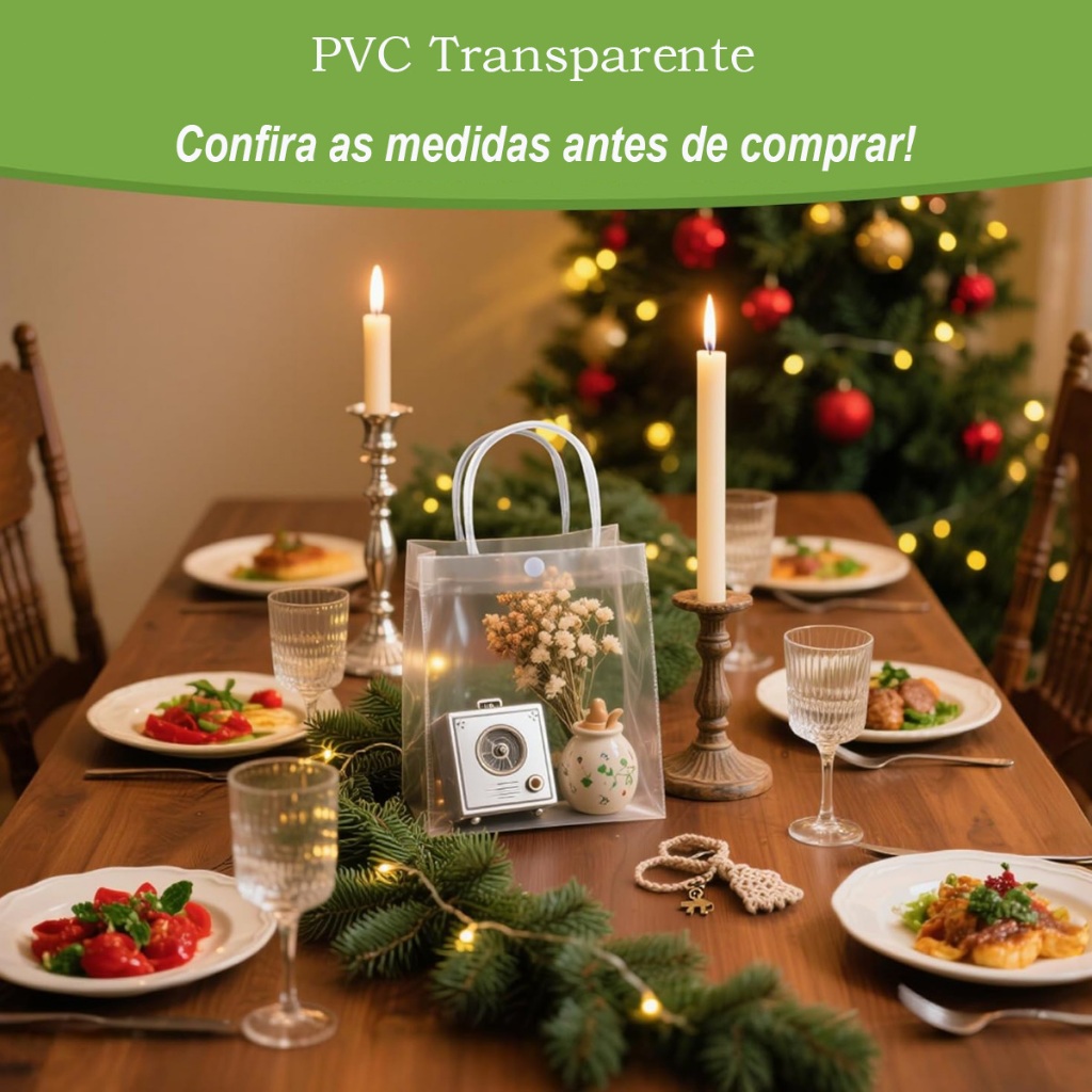 | Kit 10/20/30 Sacolas PVC com Alça de Couro Sintético - 5 Cores | R$ 95,99 | — | 4.9/5 | 2.3 mil |