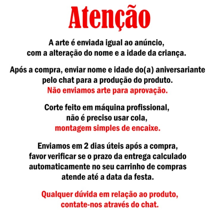 Tabela rápida para você comparar este item com outros similares de Artigos de Festa dentro do nosso catálogo.