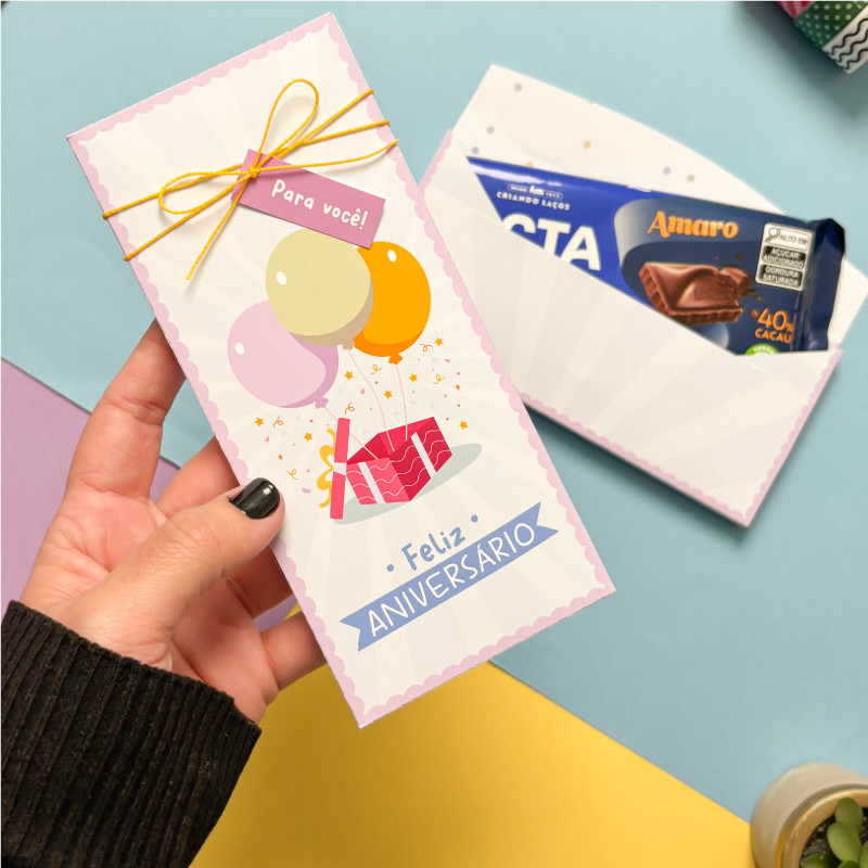 10/20 PORTA BARRA DE CHOCOLATE FELIZ ANIVERSÁRIO - CAIXA PARA BARRA DE CHOCOLATE ANIVERSÁRIO