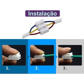 Conector Emenda Derivacao Pressão Sem Solda Sem Parafusos Conexao Rápida Auto Travamento Terminal Solução rápida e fácil para conexão entre fios de até 2,5mm. Dispensa a utilização de solda e fita isolante. Características / especificações: Bitolas compatíveis: 0,5 à 2,5mm Tensão Máx. 250VCorrente Máx. 10A Material: PE e PP - Retardador de Chamas Conexão rápida e eficiente entre cabos Contatos isolados dentro do terminal Produtos testados antes do envio O envio é feito diariamente na parte da manha de segunda a sexta-feira*** ENVIO DIÁRIO ***