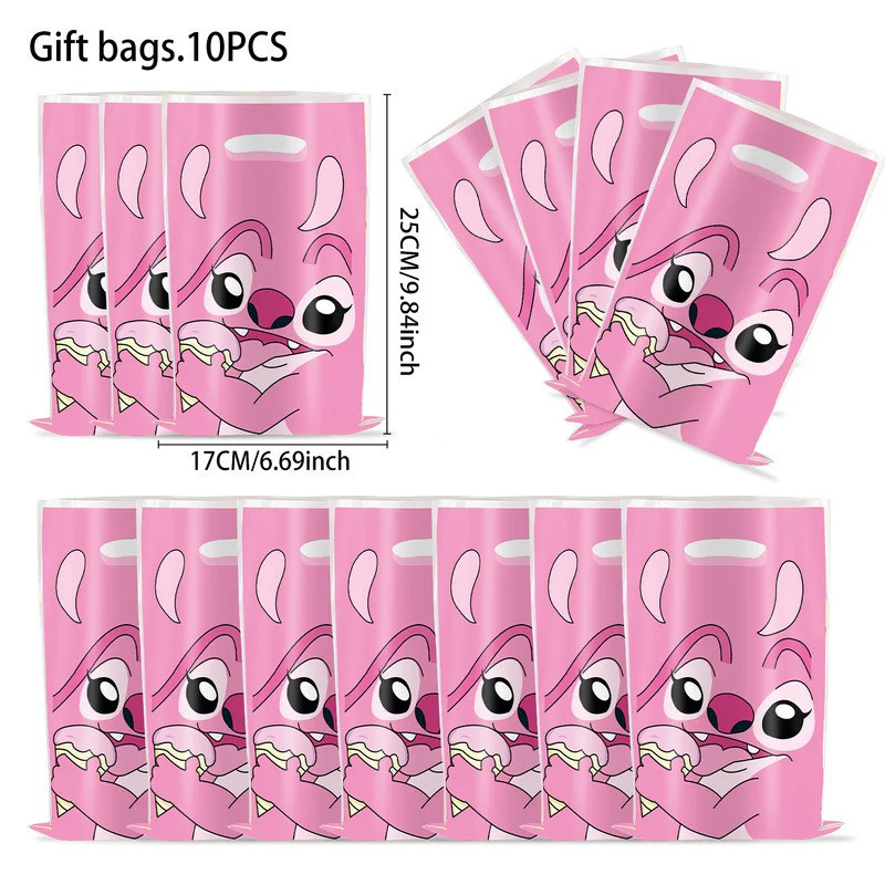 10/30 Pcs Sacolas de Presente de Plástico Disney Rosa Azul Lilo & Stitch Suprimentos para Festa Meninos Meninas Aniversá