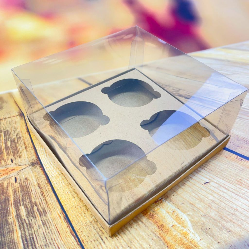 10~40 CAIXA C/TAMPA TRANSPARENTE P/4 CUPCAKE KRAFT -1668 ( IDEIA )