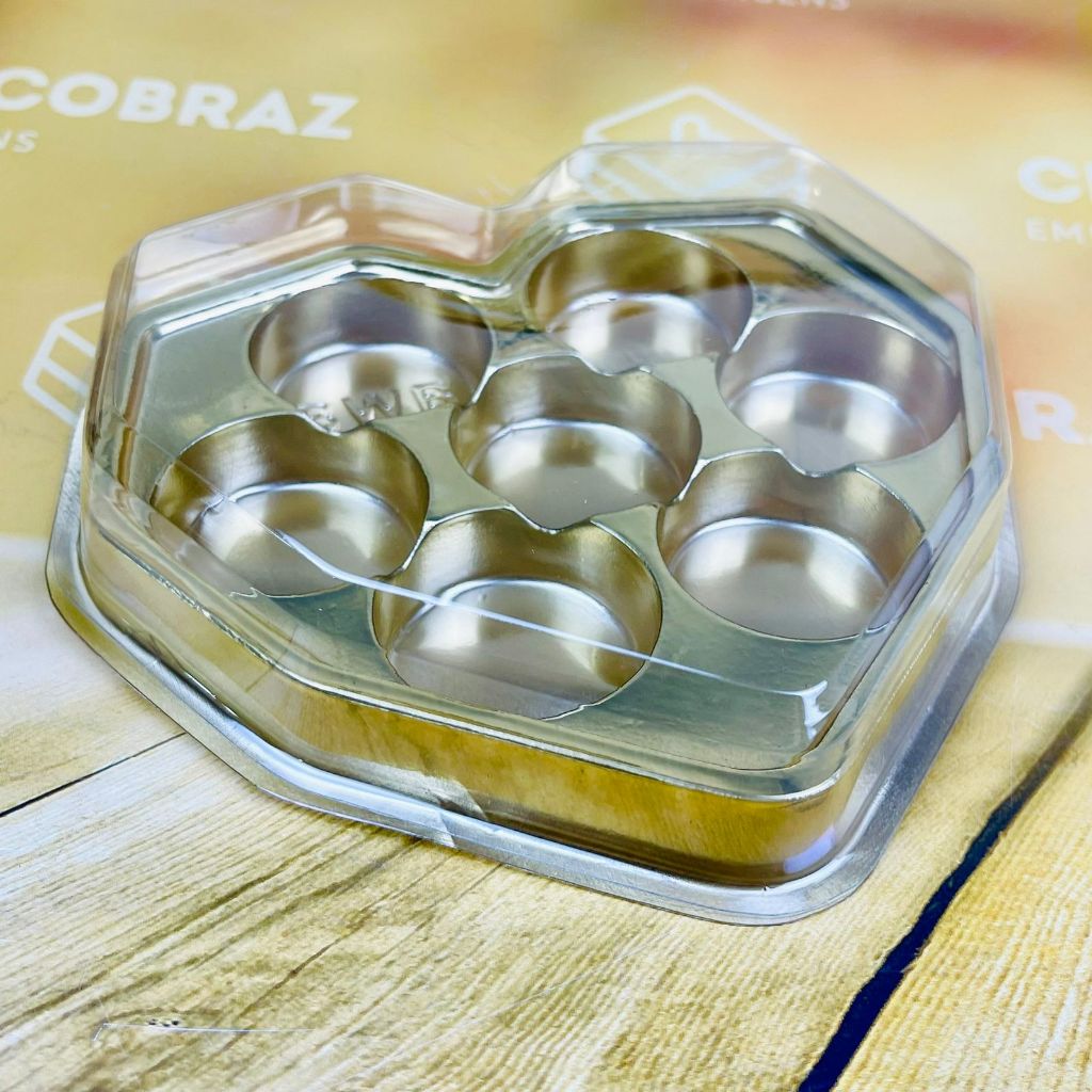 10~40 Caixa Coração Lapidado Dourado C/ 7 Cavidades P/ Bombons 14060 (BWB)//