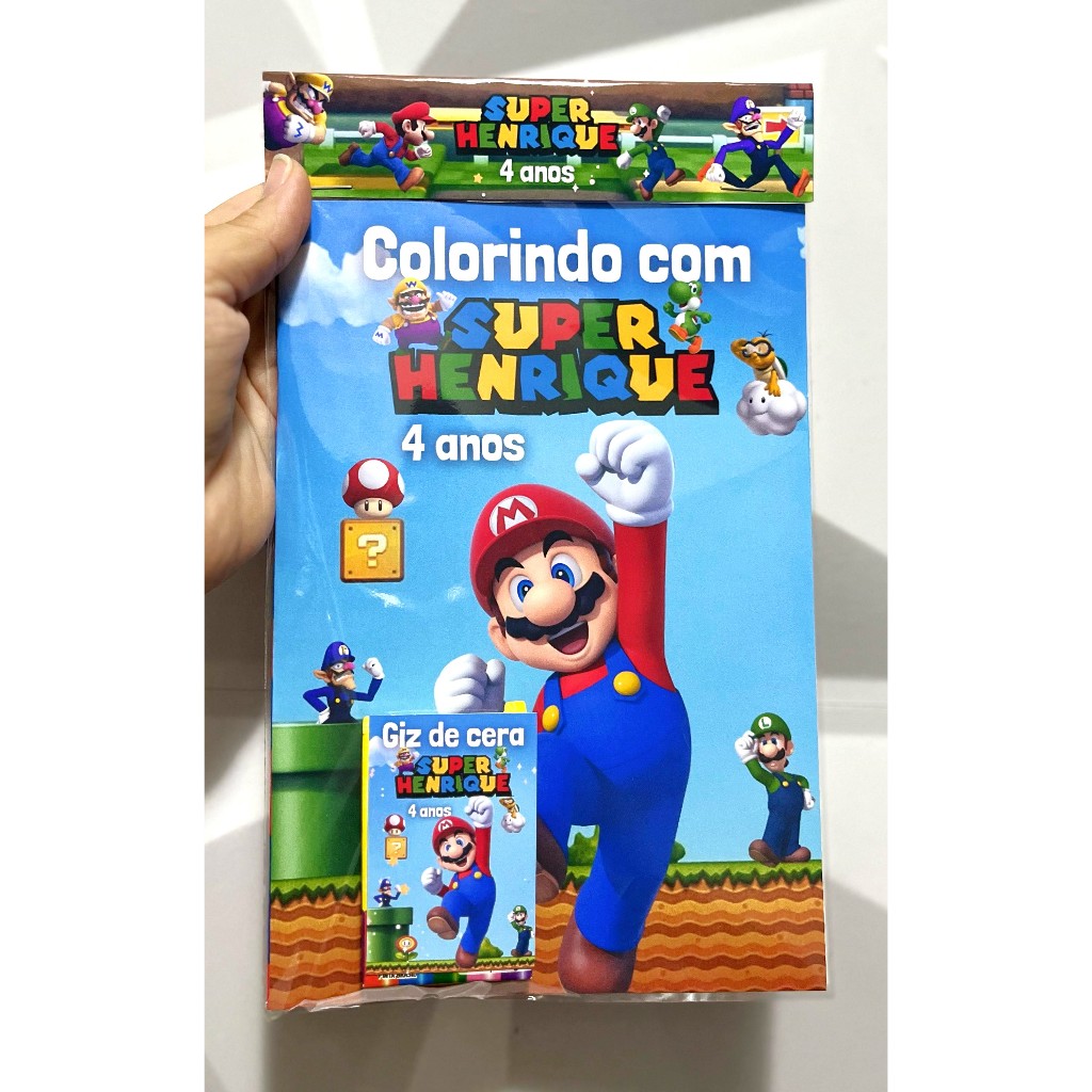 10-40 Kit livrinho A5/ revistinha de colorir ( 15x21cm )+ giz de cera (Super Mario, Mario Bross, Princesa Peach)