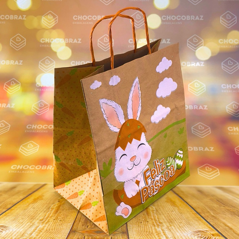 10 A 40 sacola kraft estampa para ovo de Páscoa coelho linha Páscoa cod (Idéia) pp: A 25x L 18x L12 papal: A 24 x L 22 x C 15 Pfm? A 32 x L 28 x C18