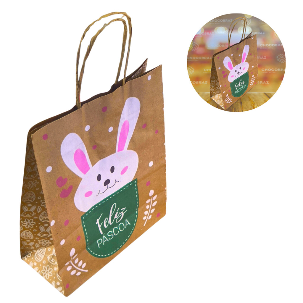SACOLAS ESTAMPADAS PÁSCOA (LC) Material: Papel Kraft Medidas: 17,5 x 8,5 x 21,5 - As sacolas podem ser usadas para presentes, vendas ou para o uso de sua preferêcia. - Alça reforçada. - Impressão de qualidade. ATENÇÃO: - Quantidade no título do anúncio.- Confira o prazo de envio no ato da compra.