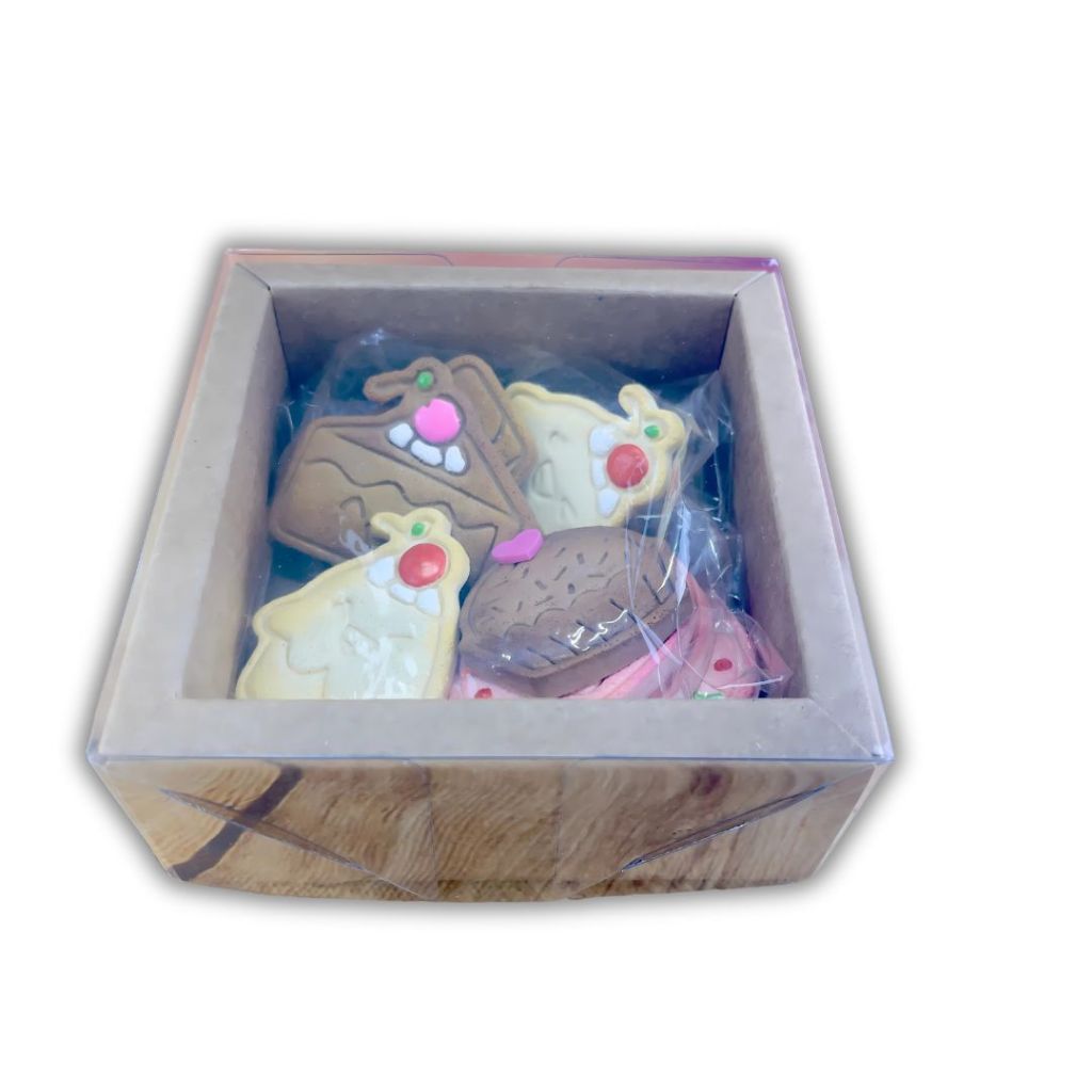 10~50 CAIXA EMBALAGEM MOLDURA 4 DOCES COM VISOR EM ACETATO KRAFT 8X8X4 – REF. 39 (CHOCOBRAZ)